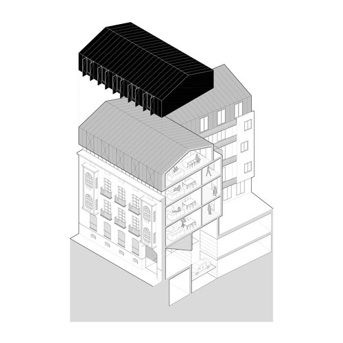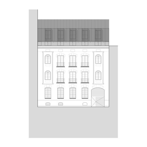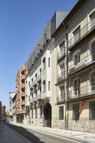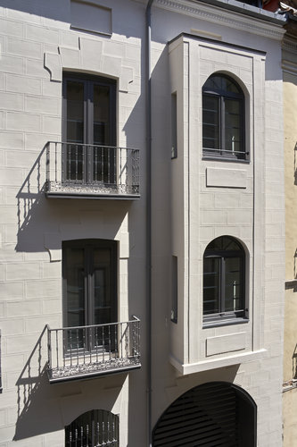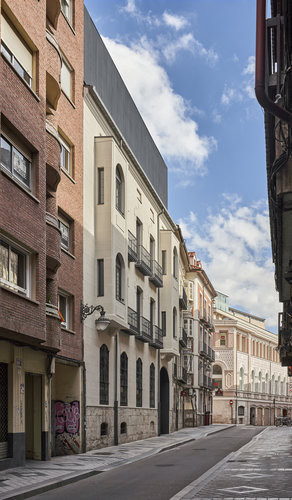 El nuevo edificio plantea una adición en la parte superior de una planta, manteniendo su fachada original y recompone en su interior los valores tradicionales de corrala y galería según lo indicado en los parámetros de protección marcados. Esta adición, propuesta por el nuevo PGOU de Valladolid y absorbida en el proyecto, pretende generar una transición entre las cornisas originales de la manzana histórica y el edificio de los años 70 que levanta dos plantas por encima del resto de edificios circundantes. El edificio se construye según proyecto del maestro de obras Julián Palacios en 1879. Conserva prácticamente todos los elementos de fachada originales, aunque los miradores, originalmente de madera fueron posteriormente sustituidos por otros de obra que son los que conserva hoy día el edificio.El proyecto supone la rehabilitación de un edificio histórico de la ciudad, con notables valores arquitectónicos, tanto en su composición exterior como en su tipología. Este edificio, de aspecto señorial, va a ser rehabilitado y adaptado para cumplir con las más altas exigencias de confort, sostenibilidad y habitabilidad actuales.