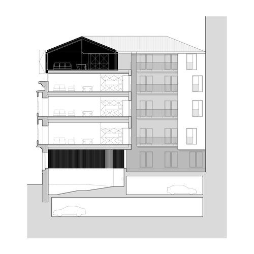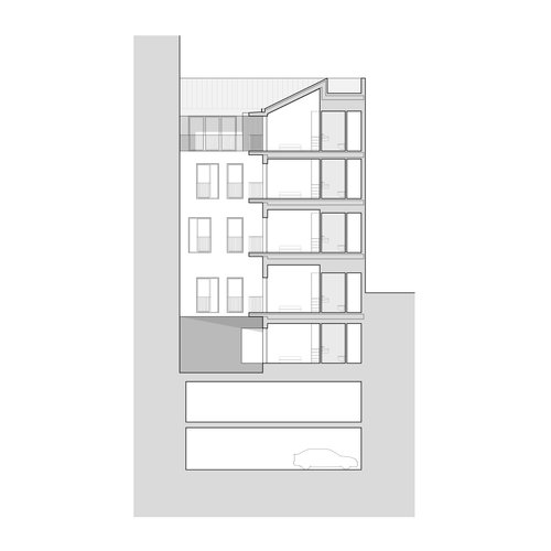 El proyecto plantea la construcción de viviendas de uno, dos, tres y cuatro dormitorios, todas ellas con exteriorización a la calle Leopoldo Cano. El edificio contará con un elevador de vehículos que dará acceso a las plazas de garaje. El portal es una parte fundamental del proyecto, manteniendo la escala original de acceso de carruajes, se plantean una serie de rampas, que recalan en el nuevo núcleo de comunicaciones, una interpretación contemporánea de la escalera desarrollada alrededor de un vacío, en este caso, ocupado por el ascensor.